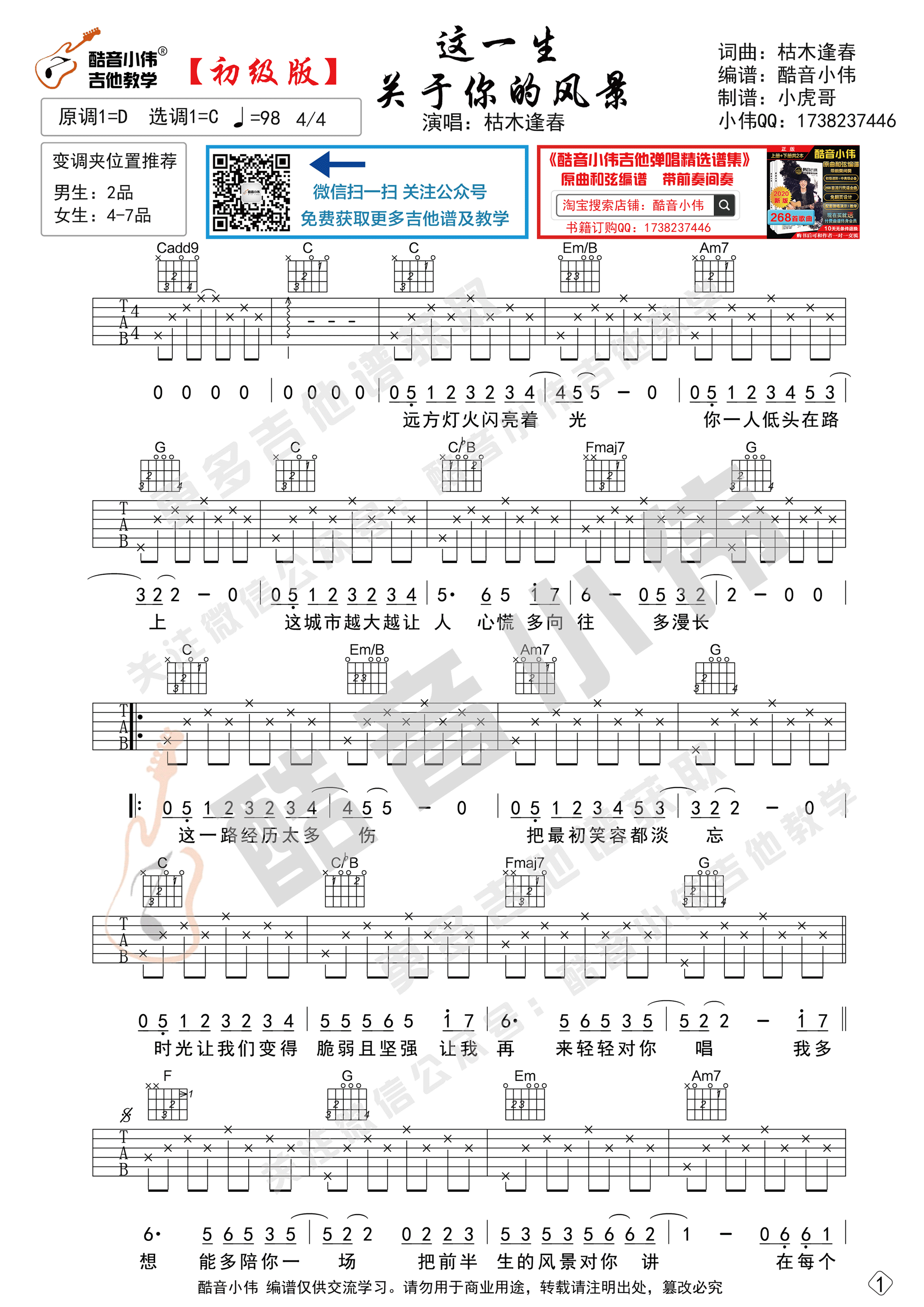 这一生关于你的风景吉他谱_吉他弹唱谱_枯木逢春_酷音小伟编配 酷音小伟 • 更新时间:2025-04-29 •阅读 231 枯木逢春《这一生关于你的风景》吉他谱_C调吉他弹唱谱_初级简单版 这一生关于你的风景吉他谱_吉他弹唱谱_枯木逢春_酷音小伟编配 - 第1张 这一生关于你的风景吉他谱_吉他弹唱谱_枯木逢春_酷音小伟编配 - 第2张 免责声明:本文版权归属酷音小伟,本站不对其内容的准确性给予任何承诺,收录仅供读者参考。如本文侵犯了您的合法权益,请及时联系本站,我们将在24小时内删除处理。本文链接:https://www.jitamao.com/pu/8644.html