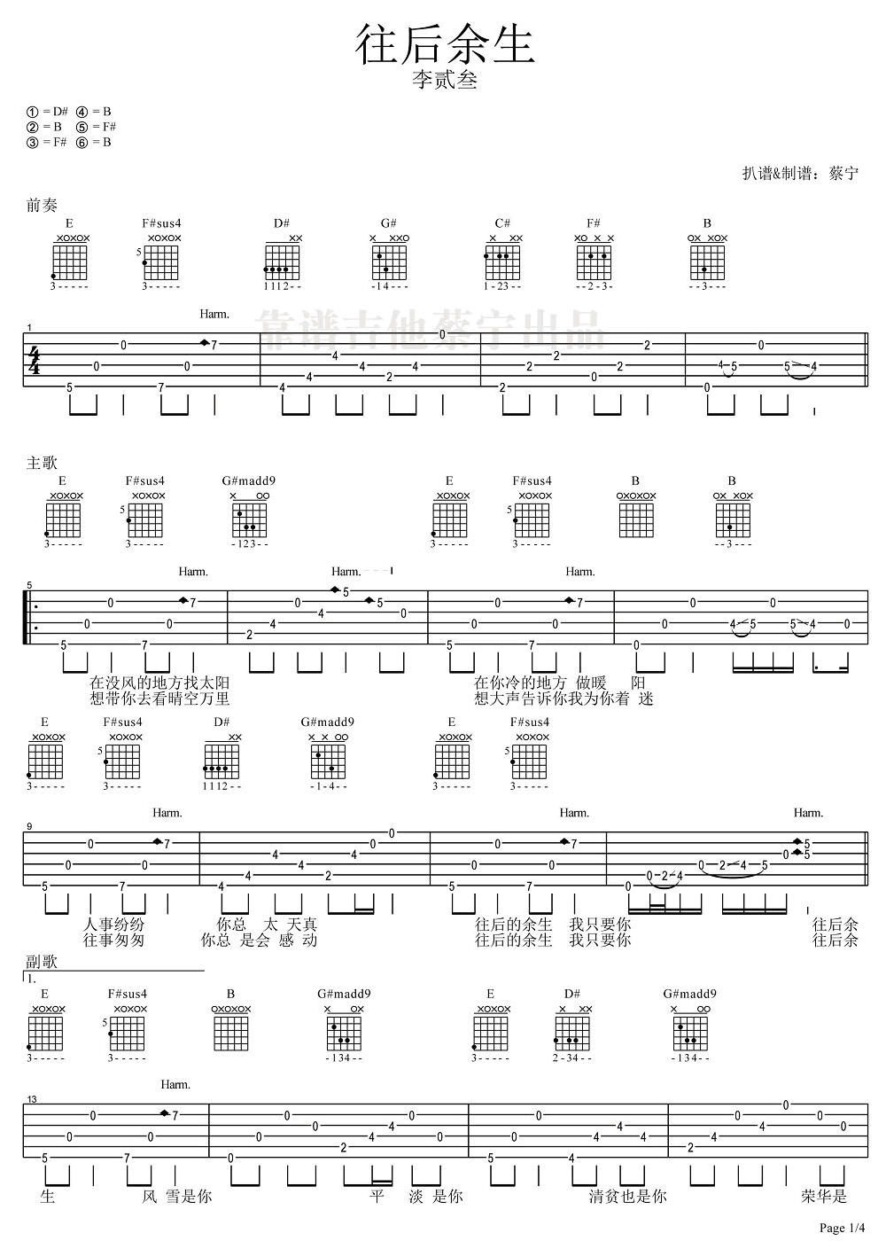 往后余生吉他谱_吉他弹唱谱_王贰浪_蔡宁编配 - 第1张