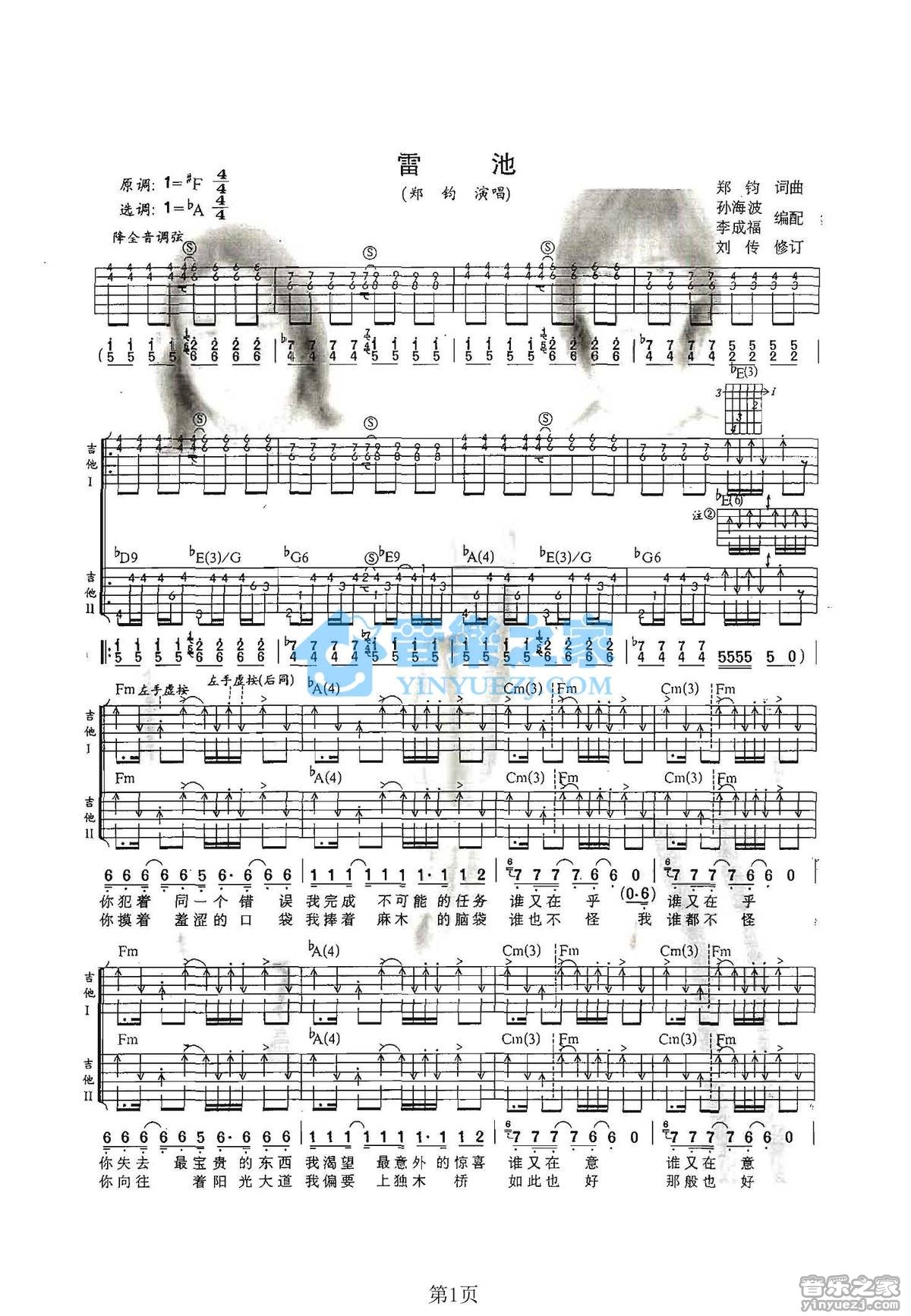 雷池吉他谱_吉他弹唱谱_郑钧 • 更新时间:2025-10-19 •阅读 9 bA调双吉他版郑钧《雷池》吉他弹唱六线谱 雷池吉他谱_吉他弹唱谱_郑钧 - 第1张 雷池吉他谱_吉他弹唱谱_郑钧 - 第2张 雷池吉他谱_吉他弹唱谱_郑钧 - 第3张 雷池吉他谱_吉他弹唱谱_郑钧 - 第4张 免责声明:本文版权归属,本站不对其内容的准确性给予任何承诺,收录仅供读者参考。如本文侵犯了您的合法权益,请及时联系本站,我们将在24小时内删除处理。本文链接:https://www.jitamao.com/pu/8798.html