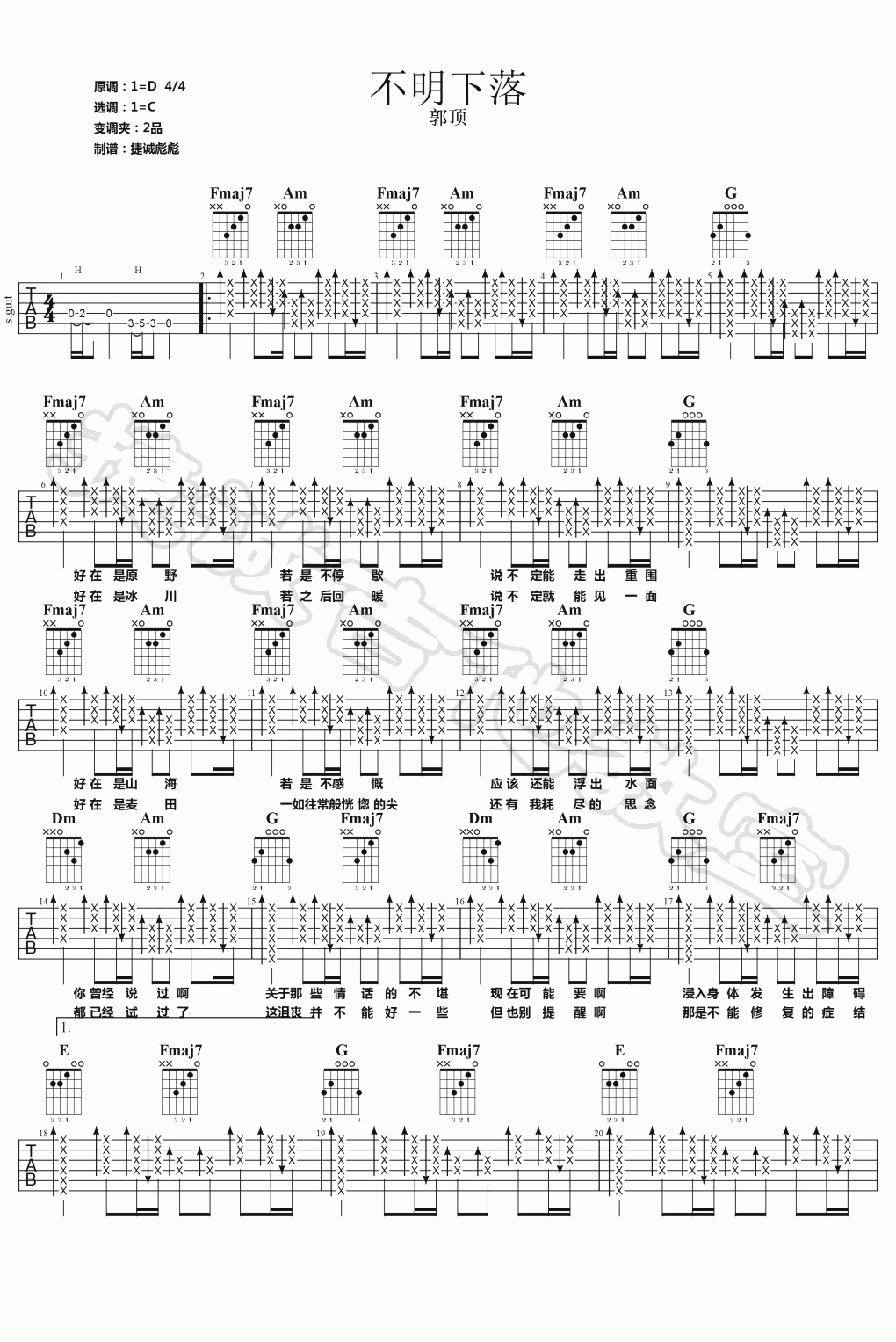 不明下落吉他谱_吉他弹唱谱_郭顶_捷诚吉他编配 捷诚吉他 • 更新时间:2025-10-28 •阅读 96 不明下落吉他谱_吉他弹唱谱_郭顶_捷诚吉他编配 - 第1张 不明下落吉他谱_吉他弹唱谱_郭顶_捷诚吉他编配 - 第2张 免责声明:本文版权归属捷诚吉他,本站不对其内容的准确性给予任何承诺,收录仅供读者参考。如本文侵犯了您的合法权益,请及时联系本站,我们将在24小时内删除处理。本文链接:https://www.jitamao.com/pu/8807.html