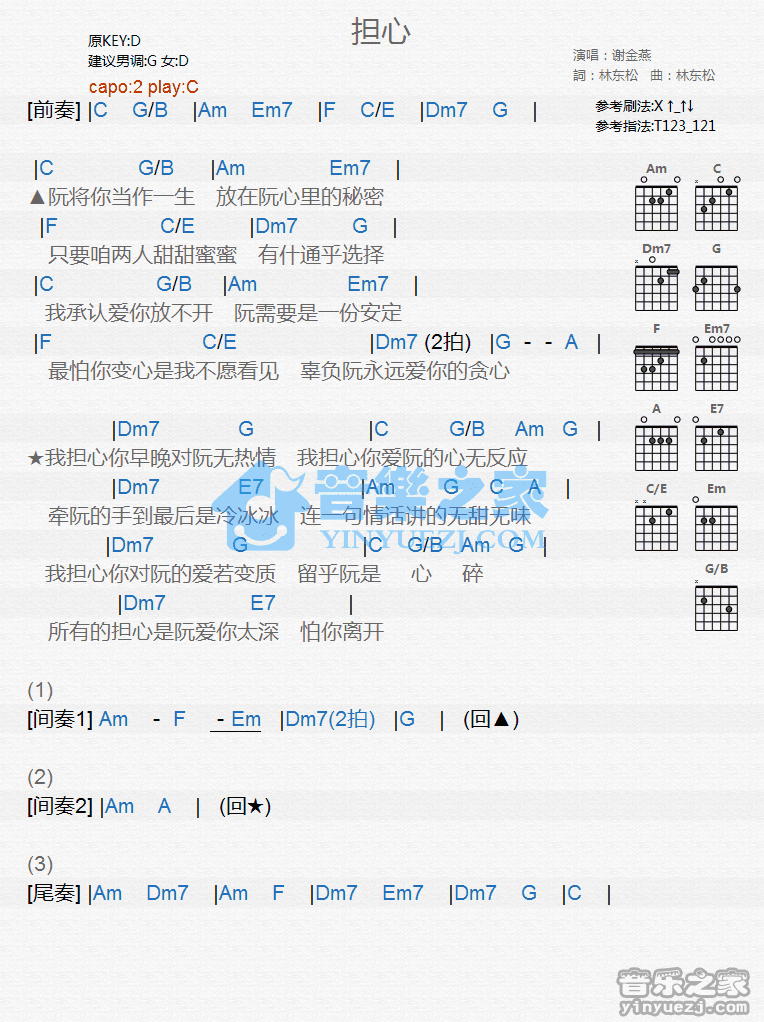 担心吉他谱_吉他弹唱谱_谢金燕 • 更新时间:2025-11-07 •阅读 71 C调版谢金燕《担心》吉他和弦弹唱谱 担心吉他谱_吉他弹唱谱_谢金燕 - 第1张 免责声明:本文版权归属,本站不对其内容的准确性给予任何承诺,收录仅供读者参考。如本文侵犯了您的合法权益,请及时联系本站,我们将在24小时内删除处理。本文链接:https://www.jitamao.com/pu/8817.html