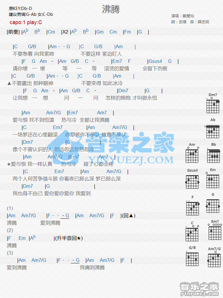 沸腾吉他谱_吉他弹唱谱_戴爱玲 • 更新时间:2025-11-27 •阅读 68 C调版 戴爱玲《沸腾》吉他和弦弹唱谱 沸腾吉他谱_吉他弹唱谱_戴爱玲 - 第1张 免责声明:本文版权归属,本站不对其内容的准确性给予任何承诺,收录仅供读者参考。如本文侵犯了您的合法权益,请及时联系本站,我们将在24小时内删除处理。本文链接:https://www.jitamao.com/pu/8837.html