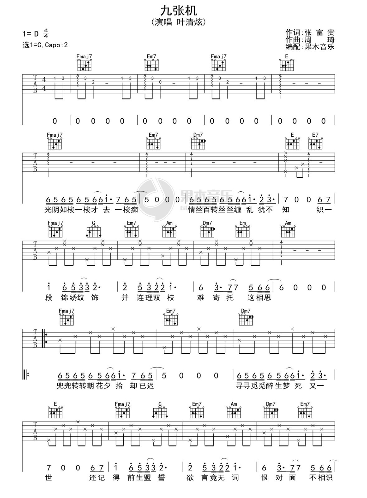 九张机吉他谱_吉他弹唱谱_叶清炫_果木音乐编配 果木音乐 • 更新时间:2025-12-11 •阅读 32 九张机吉他谱_吉他弹唱谱_叶清炫_果木音乐编配 - 第1张 九张机吉他谱_吉他弹唱谱_叶清炫_果木音乐编配 - 第2张 免责声明:本文版权归属果木音乐,本站不对其内容的准确性给予任何承诺,收录仅供读者参考。如本文侵犯了您的合法权益,请及时联系本站,我们将在24小时内删除处理。本文链接:https://www.jitamao.com/pu/8851.html