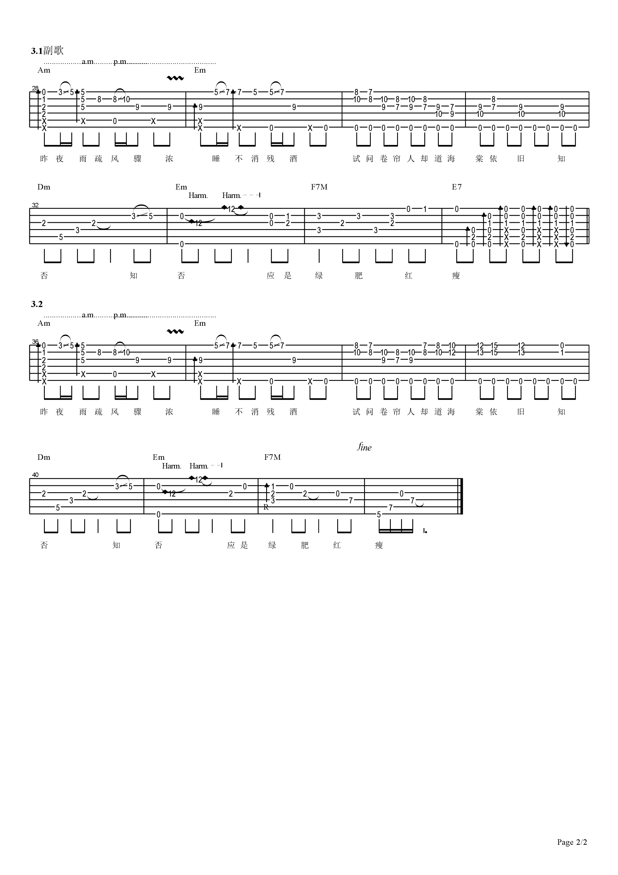 知否知否吉他谱_吉他弹唱谱_胡夏郁可唯_OD琴行编配 OD琴行 • 更新时间:2025-12-21 •阅读 13 知否知否指弹吉他谱,改编自热播电视剧《知否知否应是绿肥红瘦》主题曲,知否知否吉他独奏谱,中级版编配,隽永经典的宋词,起伏曲折的旋律,别致而又具流行感的古风歌曲,哀而不伤,细腻深情的将少女的淡淡忧愁唱出。沉思过往,悲喜坦荡。 知否知否吉他谱_吉他弹唱谱_胡夏郁可唯_OD琴行编配 - 第1张 知否知否吉他谱_吉他弹唱谱_胡夏郁可唯_OD琴行编配 - 第2张 免责声明:本文版权归属OD琴行,本站不对其内容的准确性给予任何承诺,收录仅供读者参考。如本文侵犯了您的合法权益,请及时联系本站,我们将在24小时内删除处理。本文链接:https://www.jitamao.com/pu/8861.html