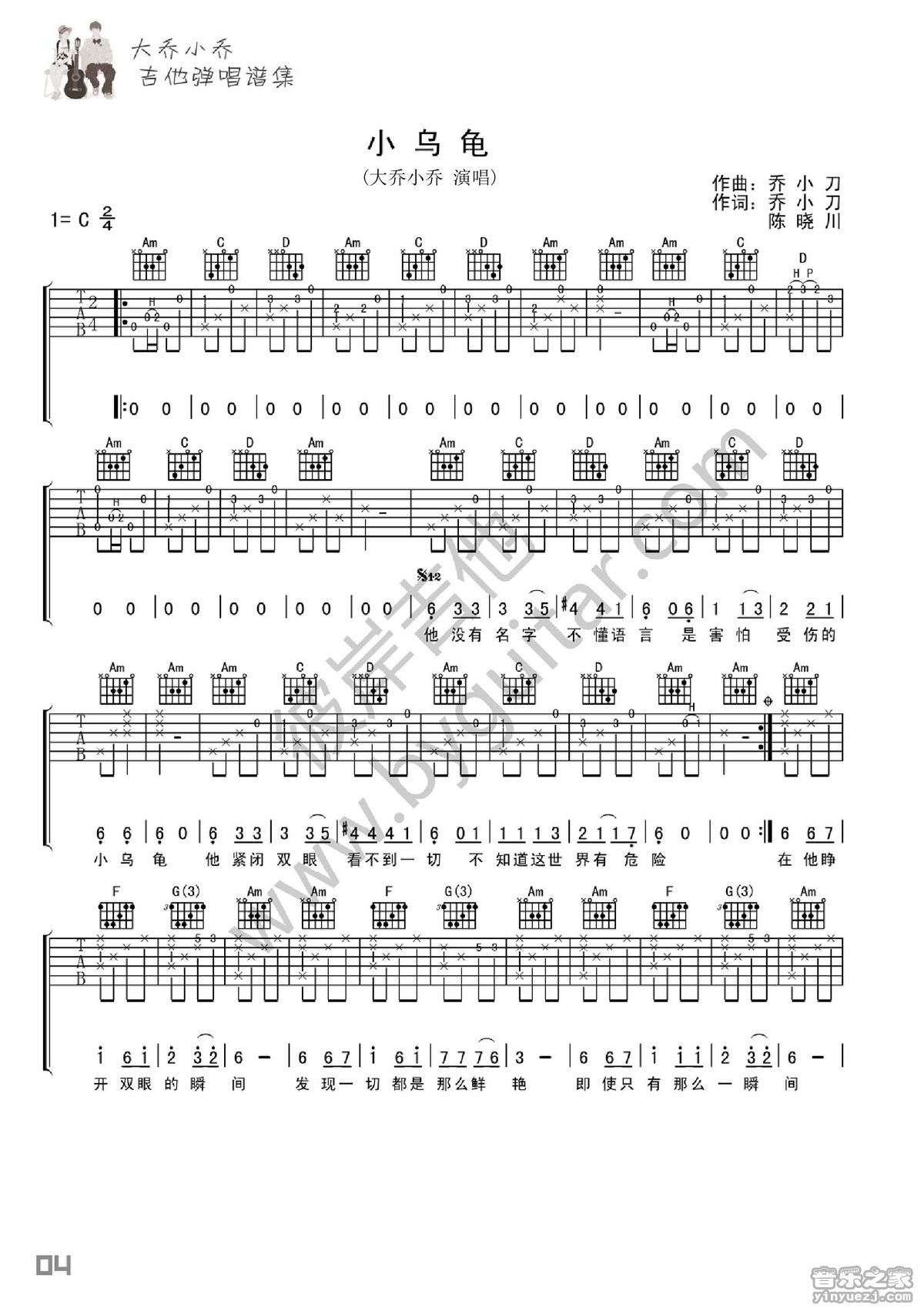 小乌龟吉他谱_吉他弹唱谱_大乔小乔 • 更新时间:2025-12-23 •阅读 37 彼岸C调版 大乔小乔《小乌龟》吉他弹唱六线谱 小乌龟吉他谱_吉他弹唱谱_大乔小乔 - 第1张 小乌龟吉他谱_吉他弹唱谱_大乔小乔 - 第2张 免责声明:本文版权归属,本站不对其内容的准确性给予任何承诺,收录仅供读者参考。如本文侵犯了您的合法权益,请及时联系本站,我们将在24小时内删除处理。本文链接:https://www.jitamao.com/pu/8863.html