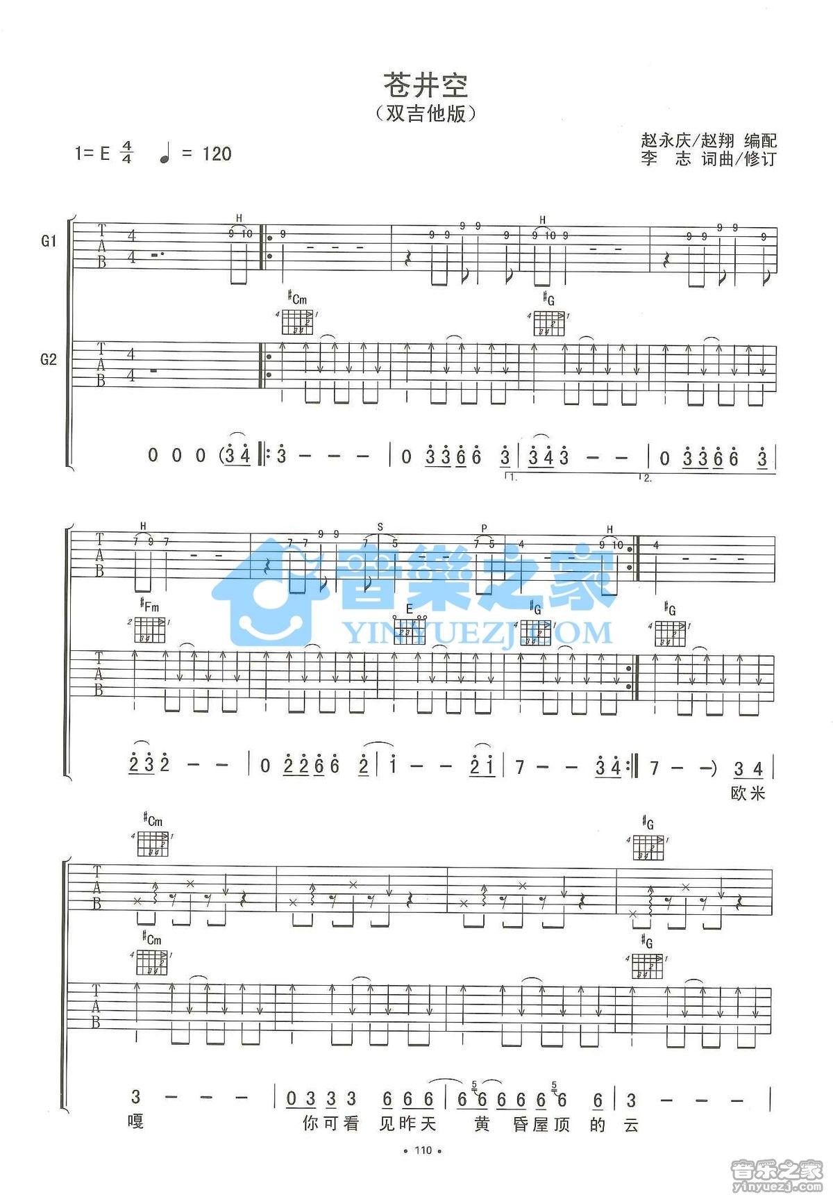 E调双吉他版李志《苍井空》吉他弹唱六线谱