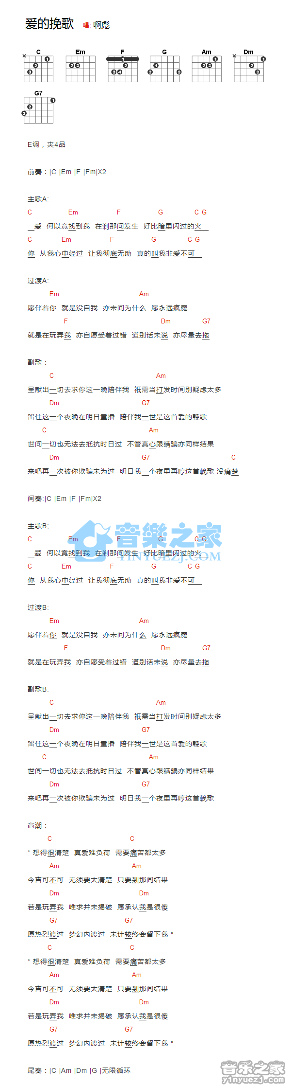 爱的挽歌吉他谱_吉他弹唱谱_郑秀文 • 更新时间:2026-01-21 •阅读 46 爱的挽歌吉他谱_吉他弹唱谱_郑秀文 - 第1张 免责声明:本文版权归属,本站不对其内容的准确性给予任何承诺,收录仅供读者参考。如本文侵犯了您的合法权益,请及时联系本站,我们将在24小时内删除处理。本文链接:https://www.jitamao.com/pu/8890.html