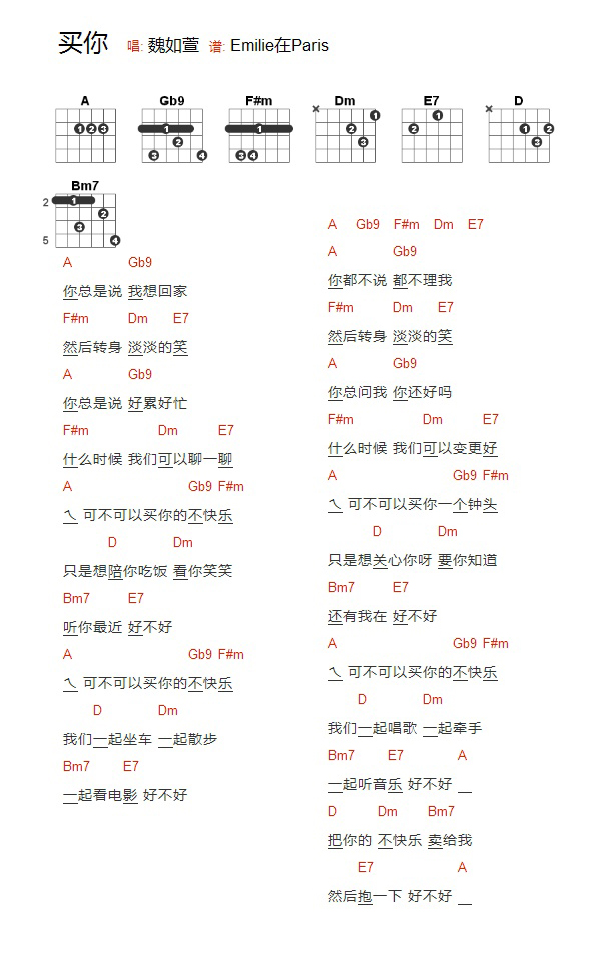买你吉他谱_吉他弹唱谱_魏如萱_YYZJ编配 YYZJ • 更新时间:2026-01-23 •阅读 56 买你吉他谱_吉他弹唱谱_魏如萱_YYZJ编配 - 第1张 免责声明:本文版权归属YYZJ,本站不对其内容的准确性给予任何承诺,收录仅供读者参考。如本文侵犯了您的合法权益,请及时联系本站,我们将在24小时内删除处理。本文链接:https://www.jitamao.com/pu/8892.html