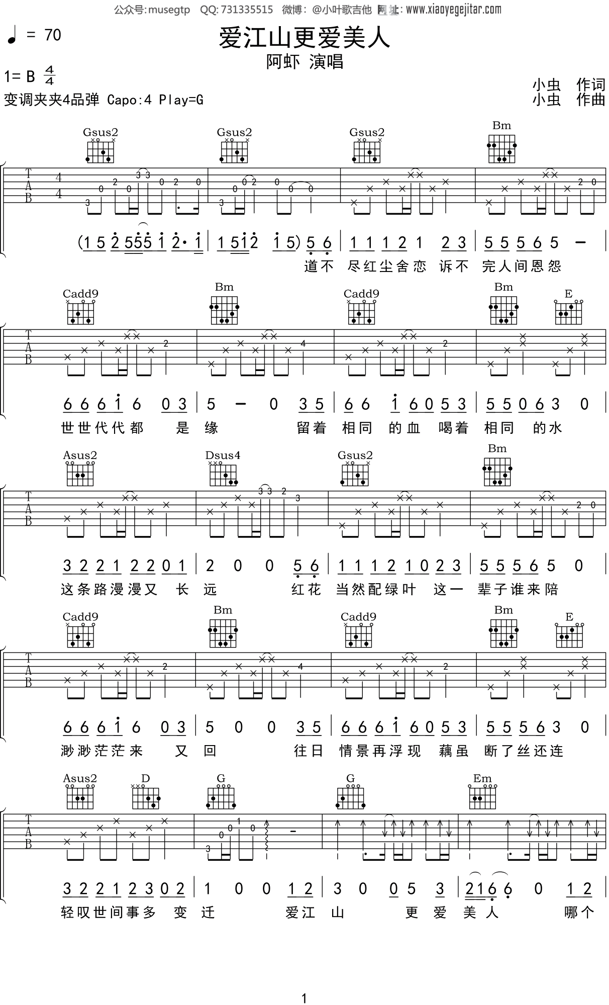 爱江山更爱美人吉他谱_吉他弹唱谱_阿虾_小叶歌吉他编配 小叶歌吉他 • 更新时间:2026-02-06 •阅读 21 阿虾《爱江山更爱美人》吉他谱_G调吉他弹唱谱 爱江山更爱美人吉他谱_吉他弹唱谱_阿虾_小叶歌吉他编配 - 第1张 爱江山更爱美人吉他谱_吉他弹唱谱_阿虾_小叶歌吉他编配 - 第2张 免责声明:本文版权归属小叶歌吉他,本站不对其内容的准确性给予任何承诺,收录仅供读者参考。如本文侵犯了您的合法权益,请及时联系本站,我们将在24小时内删除处理。本文链接:https://www.jitamao.com/pu/8906.html