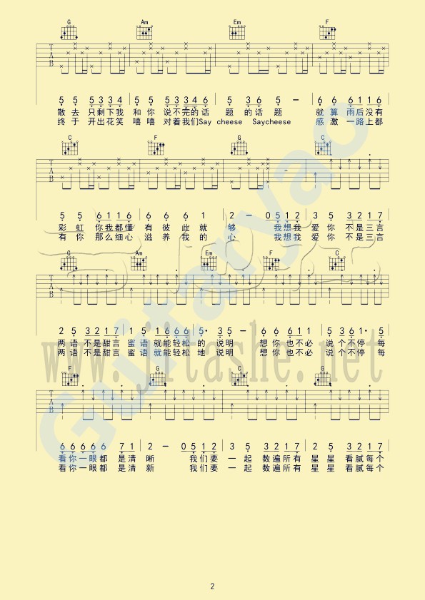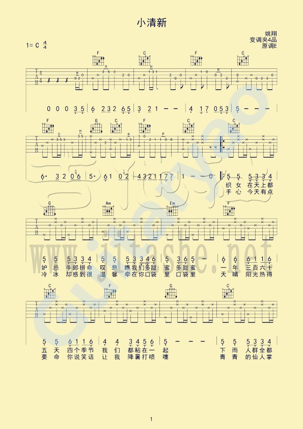 小清新吉他谱_吉他弹唱谱_四叶草 • 更新时间:2026-02-08 •阅读 10 C调简单原版四叶草《小清新》吉他弹唱六线谱 小清新吉他谱_吉他弹唱谱_四叶草 - 第1张 小清新吉他谱_吉他弹唱谱_四叶草 - 第2张 小清新吉他谱_吉他弹唱谱_四叶草 - 第3张 小清新吉他谱_吉他弹唱谱_四叶草 - 第4张 免责声明:本文版权归属,本站不对其内容的准确性给予任何承诺,收录仅供读者参考。如本文侵犯了您的合法权益,请及时联系本站,我们将在24小时内删除处理。本文链接:https://www.jitamao.com/pu/8908.html