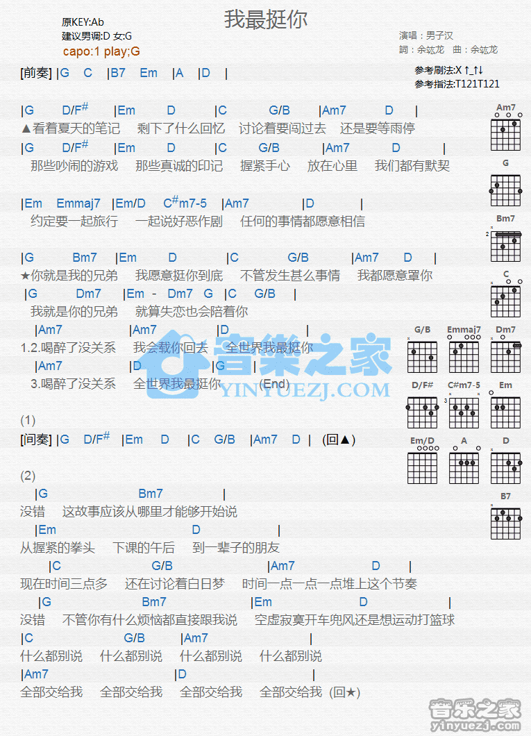 我最挺你吉他谱_吉他弹唱谱_男子汉_YYZJ编配 YYZJ • 更新时间:2026-02-14 •阅读 46 G调版《我最挺你》吉他和弦弹唱谱 我最挺你吉他谱_吉他弹唱谱_男子汉_YYZJ编配 - 第1张 免责声明:本文版权归属YYZJ,本站不对其内容的准确性给予任何承诺,收录仅供读者参考。如本文侵犯了您的合法权益,请及时联系本站,我们将在24小时内删除处理。本文链接:https://www.jitamao.com/pu/8914.html