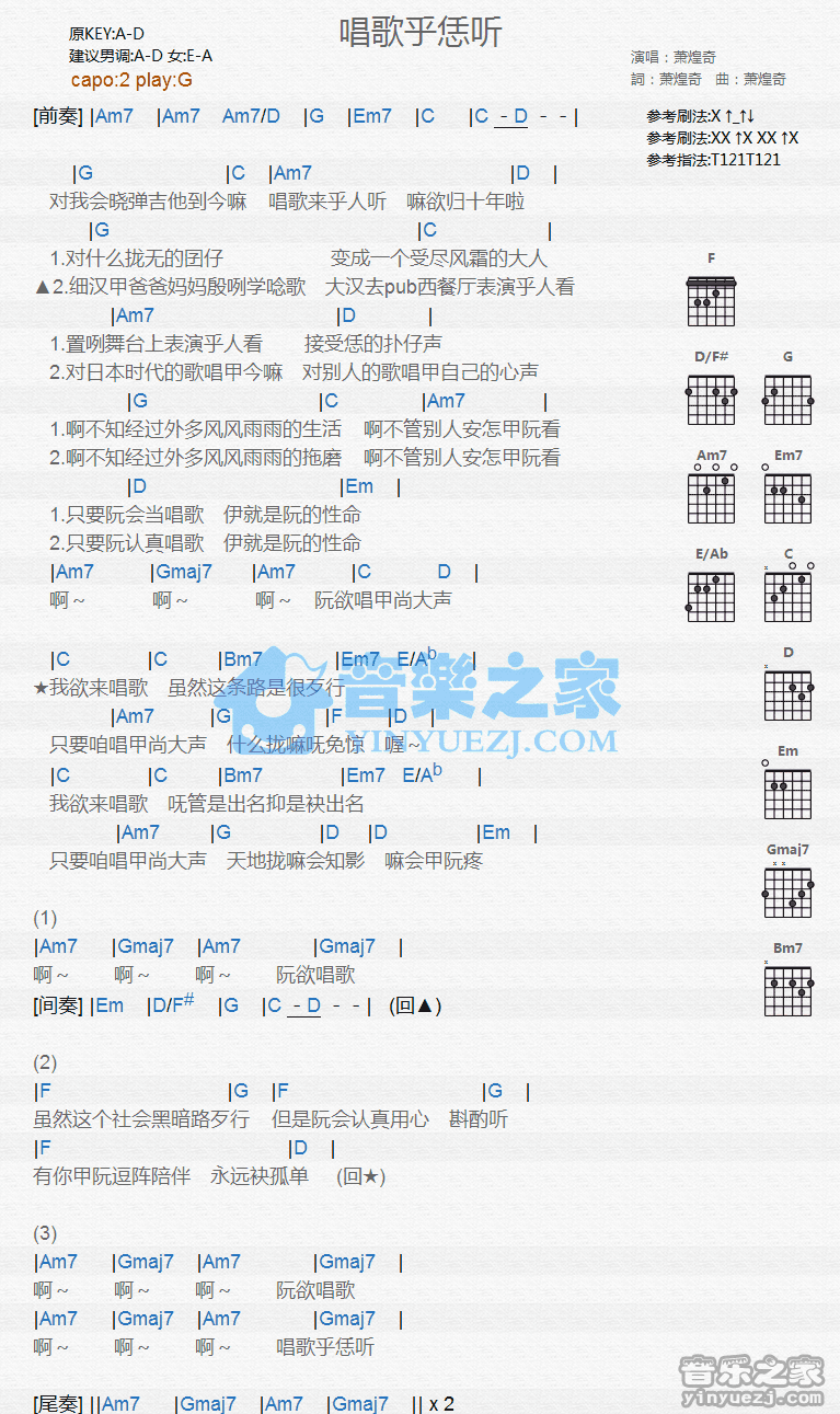 唱歌乎恁听吉他谱_吉他弹唱谱_萧煌奇 • 更新时间:2026-03-04 •阅读 100 G调版萧煌奇《唱歌乎恁听》吉他和弦弹唱谱 唱歌乎恁听吉他谱_吉他弹唱谱_萧煌奇 - 第1张 免责声明:本文版权归属,本站不对其内容的准确性给予任何承诺,收录仅供读者参考。如本文侵犯了您的合法权益,请及时联系本站,我们将在24小时内删除处理。本文链接:https://www.jitamao.com/pu/8932.html